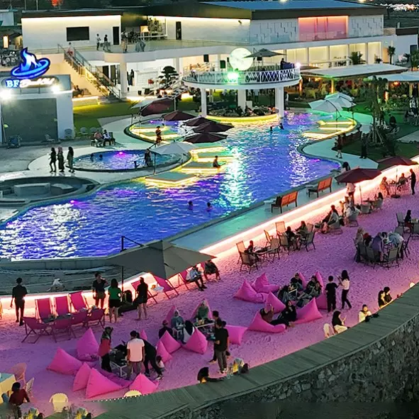 Blue Fire Beach Club baru dibuka pada 28 Juni 2024 lalu. Blue Fire Beach Club menawarkan suasana rekreasi yang ramah dengan alunan musik yang mengalun santau dan menenangkan Tempatnya begitu santai dan sangat friendly dengan soft musik yang menenangkan hati. “Blue Fire Beach Club juga menyediakan berbagai fasilitas untuk penyelenggaraan pesta sesuai dengan kebutuhan,” Satu hal yang unik dan nyentrik dari Blue Fire Beach Clubini adalah pasir berwarna pink. Pasir tersebut bahkan secara khusus didatangkan dari China. Selain bisa bermain pasir, pengunjung juga bisa berendam di kolam sambil menikmati suasana pantai.